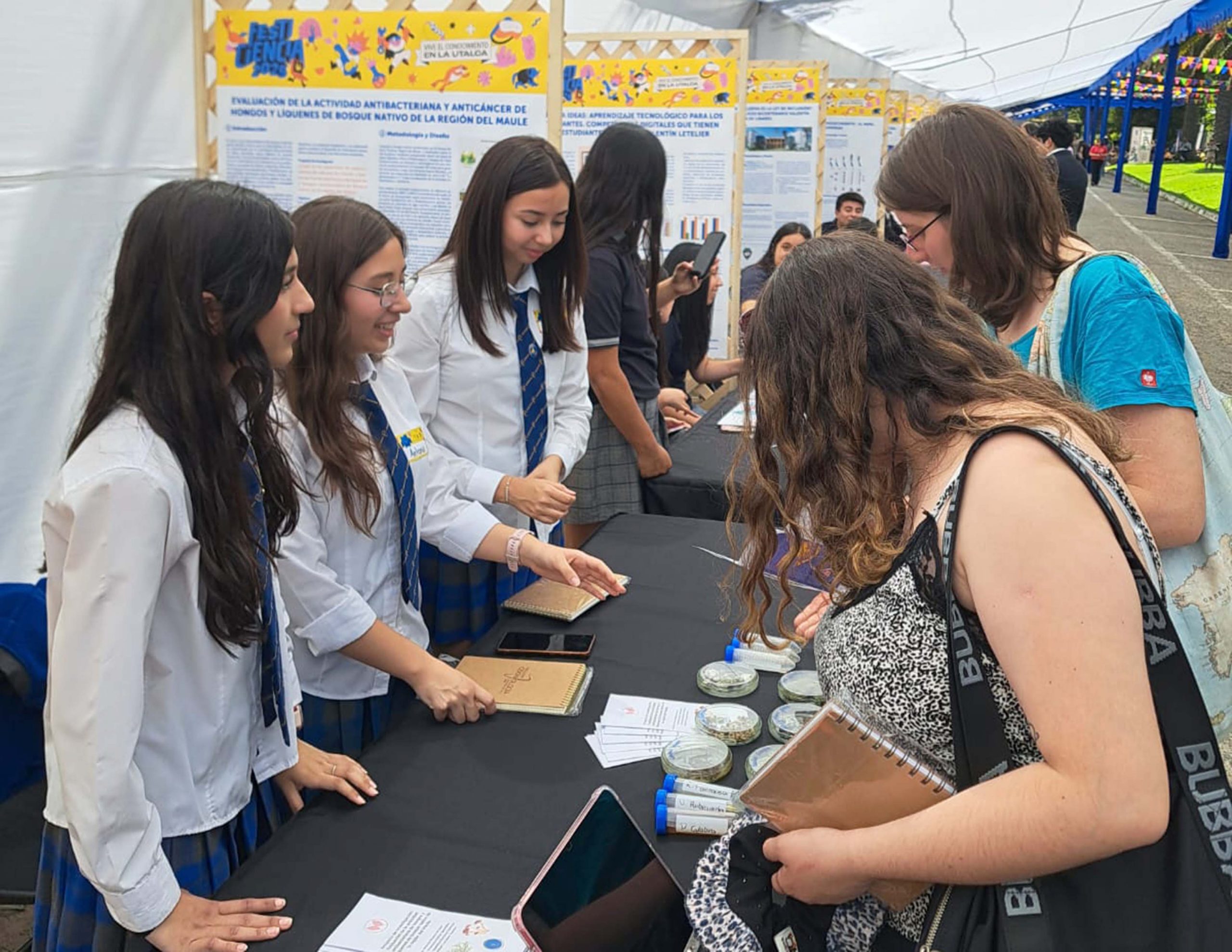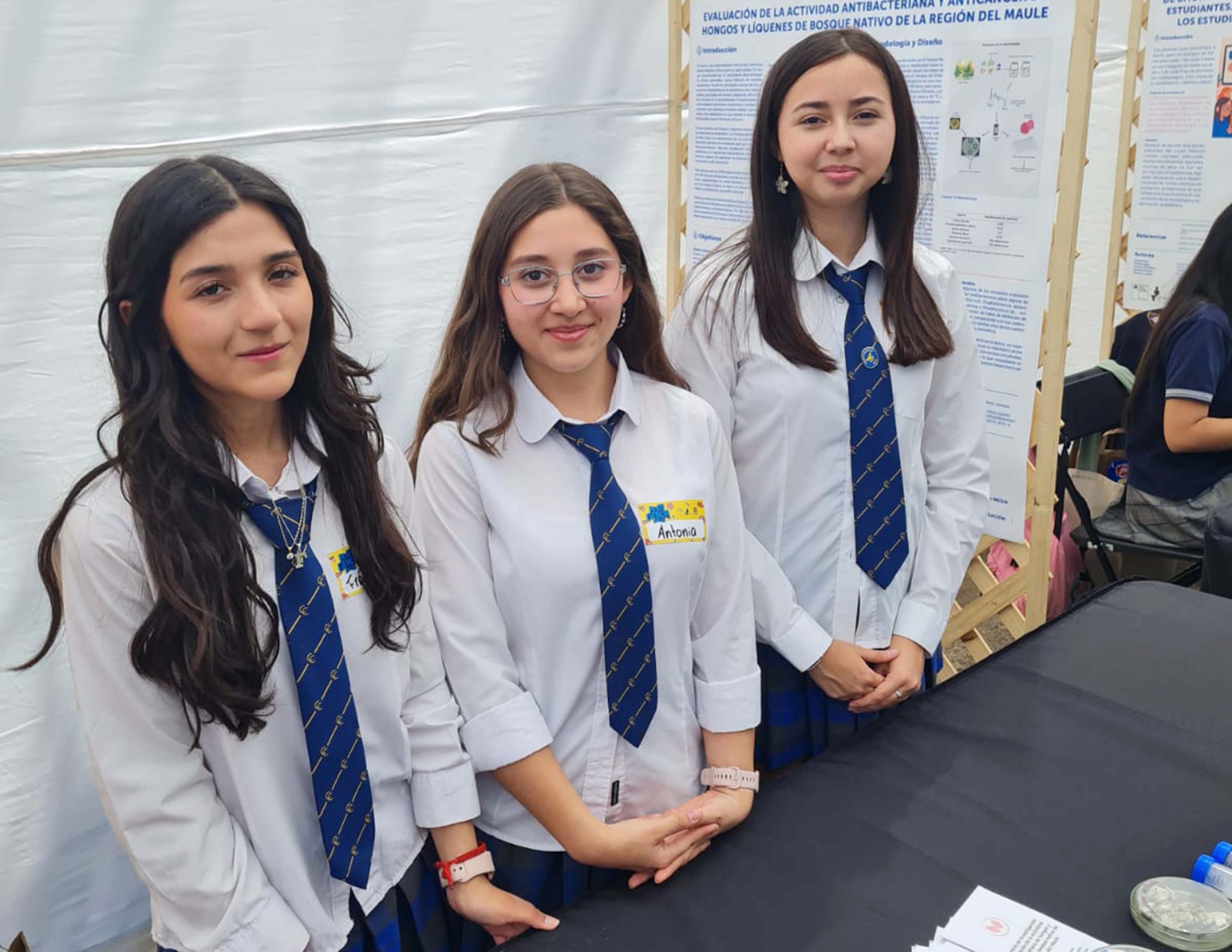 Con alegría destacamos la participación de nuestro establecimiento en Festiciencia 2025, instancia organizada por Explora Maule que promueve la divulgación de la ciencia y la tecnología en nuestra región. En esta ocasión, nuestras estudiantes de tercero medio presentaron un innovador proyecto, desarrollado durante todo el año, centrado en investigar las propiedades antibacterianas y anticancerígenas de líquenes y hongos nativos de la región del Maule, contribuyendo al conocimiento científico regional y al potencial desarrollo de futuras aplicaciones biotecnológicas.